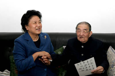 10月9日上午,中共中央政治局委员、国务委员刘延东到家中看望贝时璋院士,并致以亲切的慰问和生日的祝福。(中科院声像中心 陶瑞金/摄影)