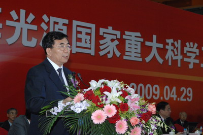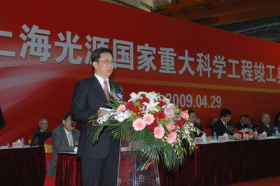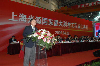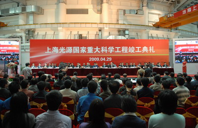 上海应用物理研究所所长、上海光源工程经理部总经理徐洪杰主持。国务院副秘书长项兆伦,上海市人大常委会主任刘云耕,上海市政协主席冯国勤,国家自然科学基金委主任陈宜瑜,中共上海市委副书记殷一璀,卫生部副部长刘谦,上海市副市长沈晓明,中共上海市委常委、秘书长丁薛祥,中科院副院长施尔畏、詹文龙,中科院秘书长李志刚等出席了竣工典礼。上海光源工程科学技术委员会委员,国外专家代表,高校、科研院所和企业等用户单位的代表,以及参加上海光源工程建设的全体科技人员等出席了竣工典礼。 坐落于张江高科技园区的上海光源,是一台高性能的第三代同步辐射光源,在科学界和工业界有着广泛的应用价值。上海光源是我国迄今为止最大的大科学装置,具有建设60多条光束线的能力,可以同时向上百个实验站提供从红外光到硬X射线的各种同步辐射光,具有波长范围宽、高强度、高亮度、高准直性、高偏振与准相干性、可准确计算、高稳定性等一系列比其他人工光源更优异的特性,可用以从事生命科学、材料科学、环境科学、信息科学、凝聚态物理、原子分子物理、团簇物理、化学、医学、药学、地质学等多学科的前沿基础研究,以及微电子、医药、石油、化工、生物工程、医疗诊断和微加工等高技术的开发应用的实验研究,将成为国家级的开放共享的多学科研究平台。 上海光源工程经国家批准,于2004年12月25日正式破土动工;建筑安装工程和公用设施工程于2006年底完成;直线加速器于2007年6月完成调束并达到性能指标;增强器于2007年10月5日成功实现3.5GeV升能,2008年7月达到性能指标;储存环调束于2007年12月24日成功实现了束流储存并出光,2008年9月30日达到主要设计指标。首批七条光束线站于2009年4月前建成,并顺利完成各项调试工作。 作为用户装置,上海光源已收到国内78所大学、科研院所用户要求在本年度进行实验的课题申请242份,累计2868个机时(约23000小时),这一要求已远远超过上海光源2009年所能提供的开放机时。目前首批课题正在评审之中。 附: 白春礼在上海光源国家重大科学工程竣工典礼上的讲话 江绵恒在上海光源国家重大科学工程竣工典礼上的致辞