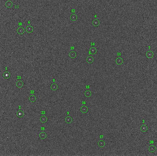 图中的亮点为所观测到的23颗星象图中的亮点为所观测到的23颗星象