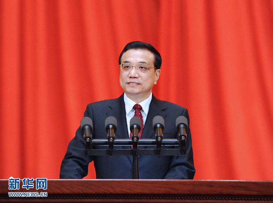 中共中央政治局常委、国务院总理李克强代表党中央、国务院在大会上讲话。新华社记者 李涛 摄