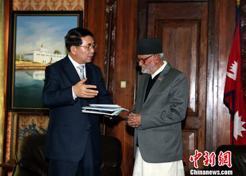 白春礼向尼泊尔总理苏希尔·柯伊拉腊介绍中科院相关情况。 符永康 摄