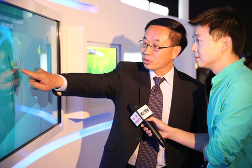 赵宇亮向媒体记者介绍纳米展