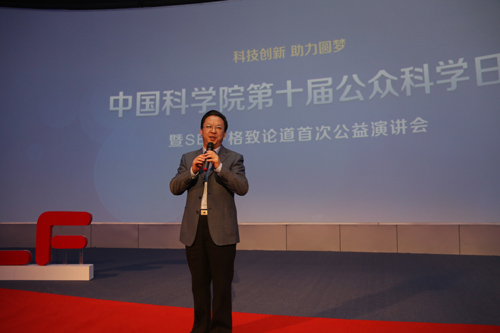 启动仪式结束后,作为今年公众科学日重头戏的“SELF格致论道”公益讲坛开幕。SELF是 Science, Education, Life, Future的缩写,提倡以“格物致知”的精神探讨科技、教育、生活、未来的发展。该活动是中科院探索全新的科普形式的有益探索,打破了过去以“知识传播”为主的科普形式,以“分享思想,启迪未来”为办会理念,旗帜鲜明地倡导思想及其精神的传播,鼓励开放的、跨界的思想交流。