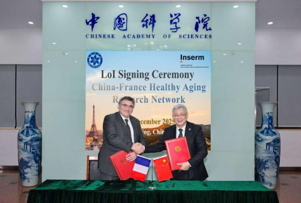 侯建国与迪迪埃·萨缪尔代表双方签署了中法健康老龄化国际研究网络意向协议。该研究网络旨在推动中法科研团队在脑健康和神经退行性病变、营养和代谢、老年肿瘤学、生物标记物和肿瘤治疗等领域的跨学科研究,为应对全球人口老龄化挑战提供更有力的科技支撑。