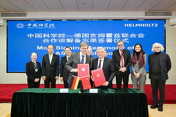 侯建国与德国亥姆霍兹联合会主席Otmar Wiestler代表双方签署合作谅解备忘录