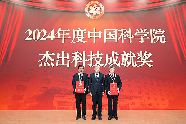 侯建国为获得2024年度无码影片 杰出科技成就奖个人成就奖的陈立泉院士、陈仙辉院士颁奖