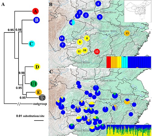 2008年以来,昆明动物所开始了对中国大鲵的研究。经过近10年的考察和走访,研究团队与国内外多个科研单位和林业部门合作,在全国范围内收集到70个野生和1034个来自养殖场的中国大鲵样品,对其野生和养殖种群遗传结构进行深入研究。结合线粒体基因等的多项分析结果意外发现,中国大鲵并非单一物种,目前研究数据支持至少5个物种的划分。这5个物种分布地与水系分布紧密相关,大致对应黄河、长江、珠江、钱塘江等水系流域。此外,在养殖场种群中意外发现了另外两个独特的支系,加之记录的分布于海拔4000米的青藏高原种群,推测中国大鲵有可能包括高达8个物种。