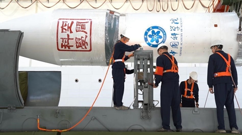 涂有中科院“空间科学”字样的火箭整流罩