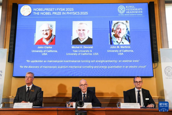 在量子力学诞生百年之际,瑞典皇家科学院7日宣布,将2025年诺贝尔物理学奖授予约翰·克拉克、米歇尔·H·德沃雷和约翰·M·马蒂尼斯三名量子物理学家,以表彰他们在电路中实现宏观量子力学隧穿效应和能量量子化方面的贡献。