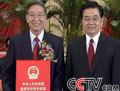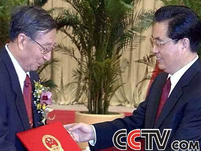 国家主席胡锦涛为李振声颁发获奖证书