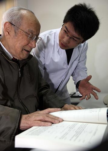 徐光宪院士与他的学生讨论学术问题(2008年11月19日摄)。新华社记者高学余摄