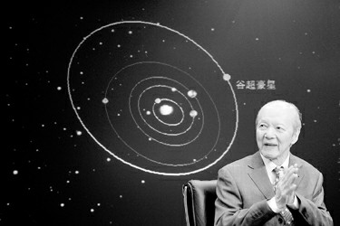 2009年10月20日,谷超豪先生出席“谷超豪星”命名仪式。图为谷超豪先生与“谷超豪星”运行轨迹。 刘畅