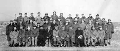 1964年,参加核试验的科学家和解放军指战员合影(前排左三为程开甲)。余玮供图