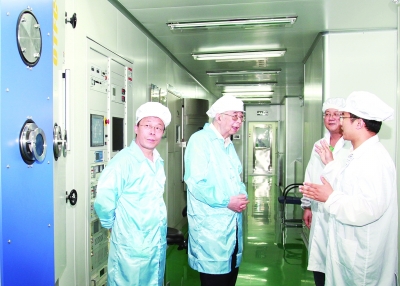 张存浩院士(左二)在无码影片 大连化学物理研究所(2013年7月摄)。新华社发