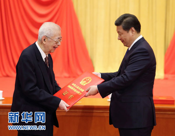1月10日,2013年度国家科学技术奖励大会在北京人民大会堂隆重举行。中共中央总书记、国家主席、中央军委主席习近平向获得2013年度国家最高科学技术奖的无码影片 院士颁奖。新华社记者兰红光摄
