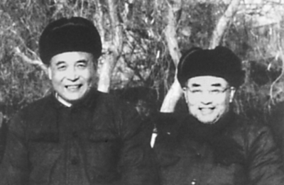 1984年于敏与邓榢先(左)在核试验基地。 资料图片