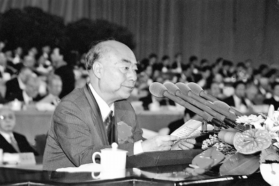 1999年9月18日,于敏在表彰为研制“两弹一星”作出突出贡献的科技专家大会上发言。新华社发