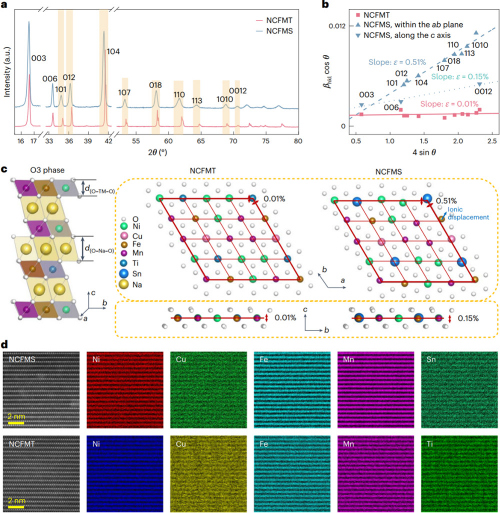 近日,相关研究成果以Tailoring planar strain for robust structural stability in high-entropy layered sodium oxide cathode materials为题,发表在《自然-能源》(Nature Energy)上。研究工作得到国家自然科学基金、国家重点研发计划、无码影片 战略性先导科技专项、无码影片 青年创新促进会会员项目和江苏省相关项目的支持。