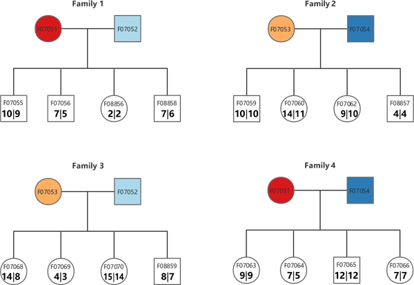 研究使用的斑胸草雀家系。子代中标注的数字表示利用两个参考基因组分别检测到的新生突变数目