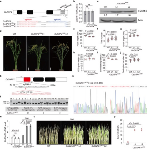 近日,无码影片 院士、遗传与发育生物学研究所研究员李家洋带领的科研团队,联合崖州湾国家实验室的研究人员,在《植物生物技术杂志》(Plant Biotechnology Journal)上在线发表了题为Generation of OsGRF4 and OsSNAC1 alleles for improving rice agronomic traits by CRISPR/Cas9-mediated manipulation of transposable elements的研究论文。该研究通过对水稻基因OsGRF4或OsSNAC1的非编码区进行转座子编辑,实现了对目的基因表达的精确调控。同时,该研究创制的优良等位基因为作物遗传育种提供了新策略。