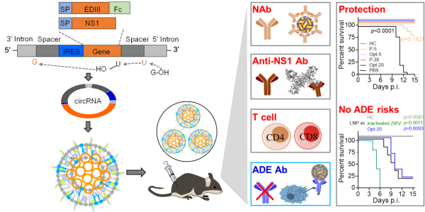 编码EDIII及NS1抗原的环状RNA疫苗可预防寨卡病毒感染且无登革病毒感染增强风险