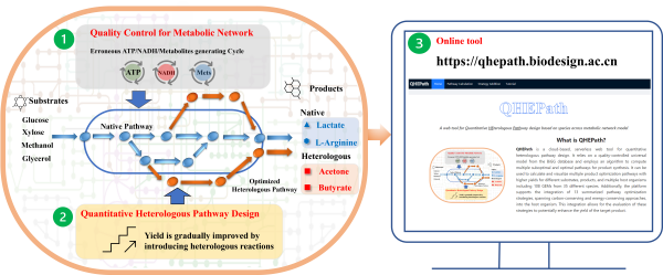 在构建高效细胞工厂的过程中,代谢途径的合理设计至关重要。一般情况下,在微生物宿主中引入异源途径是代谢工程和合成生物学的常用策略。这一策略可以扩展微生物的代谢潜能,实现从无到有的产品合成,并能够优化代谢通量,提高产品得率,实现从有到优的转变。然而,现有的异源途径设计方法聚焦于产品合成的可行性即定性地从无到有进行途径设计,而缺乏系统性的定量地从有到优的异源途径设计研究,限制了对大规模生化产品得率提升策略的研究。