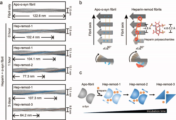肝素多糖对成熟α-syn纤维的时序重塑