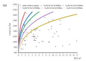 空间碎片测量结果统计:(a)测量结果分布图;(b)测距精度分布图