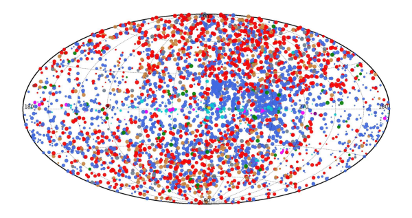 “天关”卫星宽视场X射线望远镜探测到的6800多个X射线源在天球上的分布(银道坐标系)