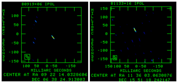 数据相关处理过程采用“数据分箱”技术“捕捉”脉冲星脉冲信号。这一技术所需的脉冲星高精度星表由上海65米射电望远镜长期计时监测予以保障。同时,研究采用相位参考源条纹拟合以及美国航空局喷气推进实验室电离层模型等手段消除电离层影响,探索设置合适权重的方法来综合保证观测成图灵敏度和分辨率。此次探路性观测探测到脉冲星B0919+06和B1133+16。