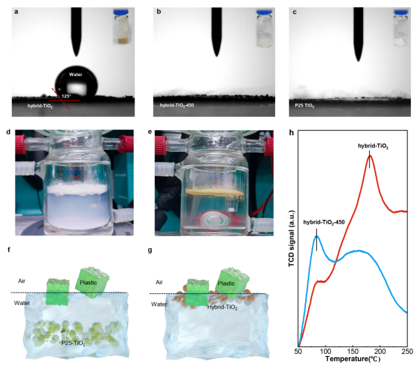 该可漂浮TiO2材料具有优异的光重整塑料性能,在不依赖于腐蚀性溶液预处理的情况下,可将典型塑料(包括聚乙烯、聚丙烯和聚氯乙烯)的光重整效率提升1到2个数量级,同时产生选择性超过40%的高值乙醇产物。