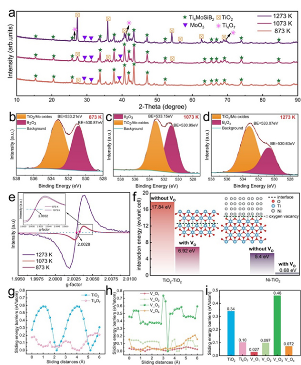 研究人员发现,材料原子尺度上的层状结构在穿晶断裂时有效引导裂纹偏转,改变裂纹扩展路径,提高了低温断裂韧性;由于晶粒沿不同方向热膨胀差异造成晶界的热失配,进而改变了断裂模式,使材料在室温至1000℃范围内表现出优异的综合力学性能,同时赋予材料较传统陶瓷优异的损伤容限。与DD5高温合金对摩时在全温度范围内都具有良好的抗磨性能,尤其在高温条件下摩擦化学反应生成的具有氧空位TiO2,一定程度上实现减摩效果,并出现了“负磨损”现象。