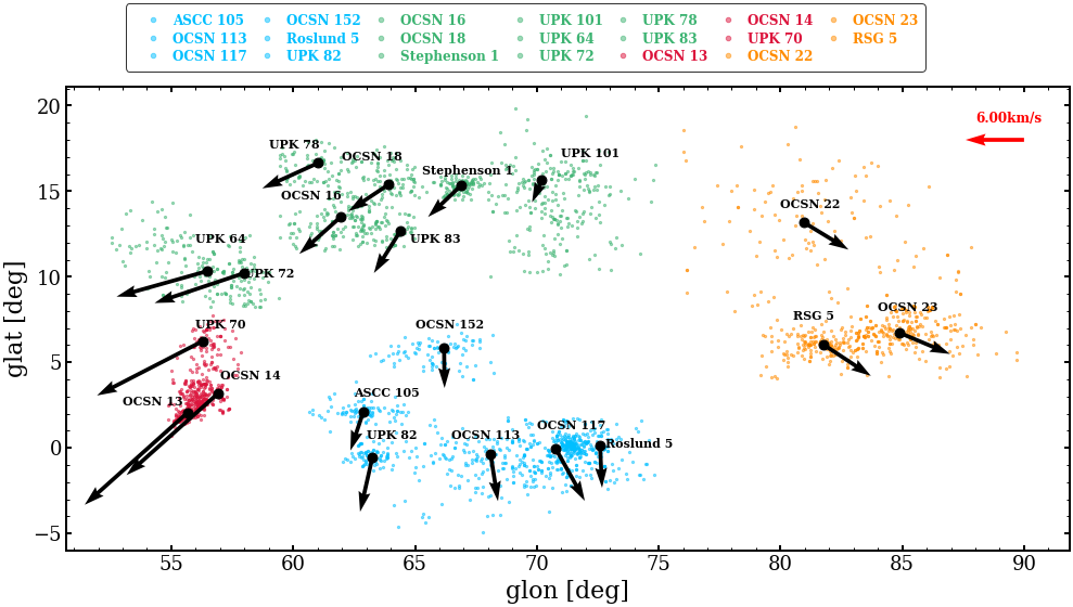 星团群是指一组空间上邻近、运动学性质相似、年龄接近的疏散星团,通常起源于同一巨大分子云。该研究系统性识别出4个原初星团群,其中G1和G2展现出明显的环状与弧状空间结构。研究提出,这一结构或源于早期超新星爆炸形成的冲击波对分子云的压缩作用,从而在不同位置依次触发恒星形成。