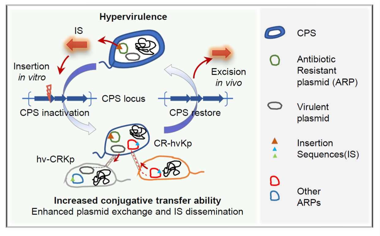 该研究揭示了插入序列通过调控荚膜表达,推动耐药性与毒力基因融合的动态机制,为研究CR-hvKP的进化与传播提供了新思路。