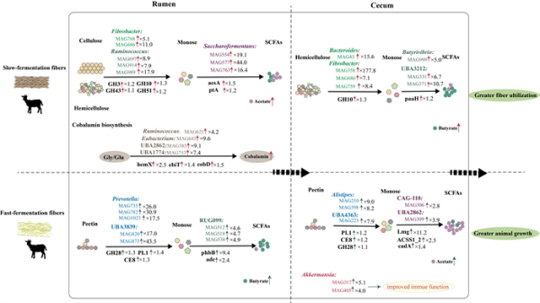 此研究从全消化道的角度解析了哪些微生物、酶和途径参与了不同纤维组分利用的动态过程,可为靶向消化道微生物提升反刍动物纤维利用效率提供理论依据。