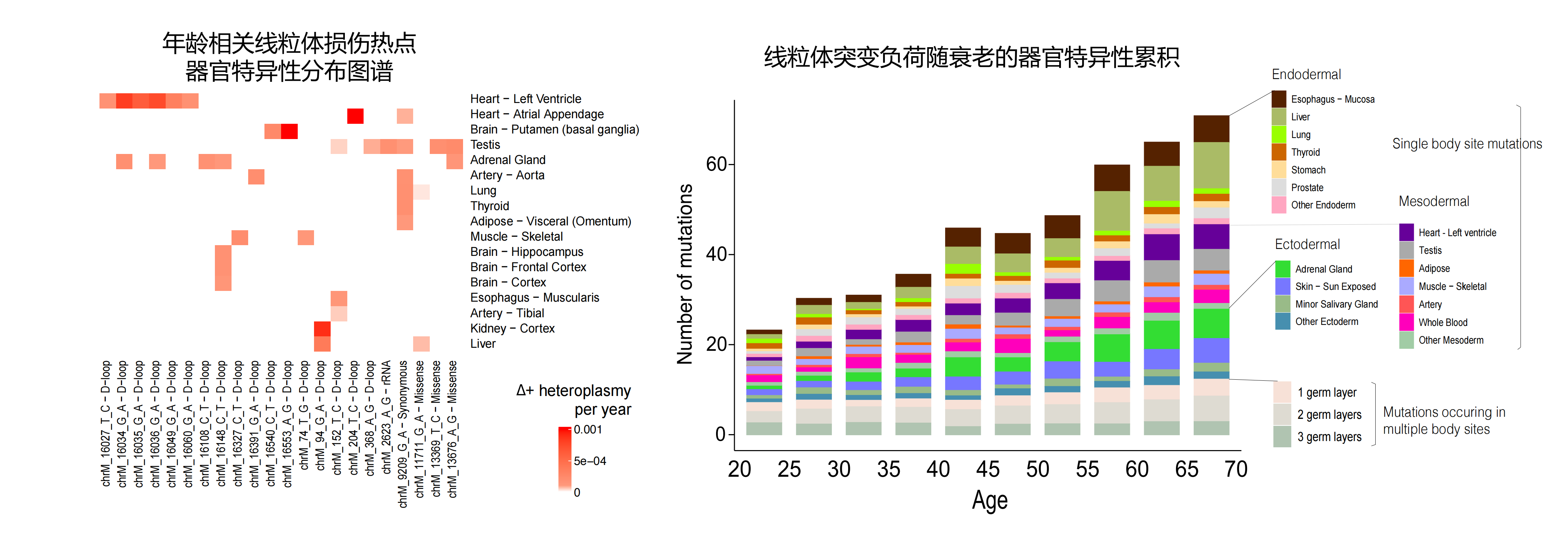 近日,无码影片 上海营养与健康研究所研究员李昕团队利用罕见变异识别技术,对国际公开数据库中超万例的线粒体转录组低频变异数据进行深度提取,系统性绘制了人体组织特异性的线粒体突变图谱,揭示了线粒体突变随年龄增长而积累的“双相”时钟规律,并提出了线粒体通过两种不同模式编码器官衰老——增殖更新组织的随机突变扩散与终末分化组织的确定性损伤热点。