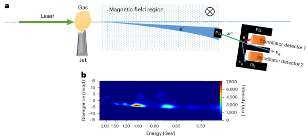缪子是标准模型中组成物质世界的基本粒子之一,属于第二代轻子。它的质量为电子的207倍,被称为“胖电子”,在真空中静止时的寿命约为2.2微秒,衰变产生一个电子和两个中微子。缪子是基础物理和应用物理研究的热点,其稀有衰变是检验标准模型、寻找新物理的探针;其极强的穿透性可应用于大尺度客体的透射照相、跨介质通信与导航;基于缪子的磁共振可用于探测样品内部的微磁场以及研究材料特性;它还可以合成缪氢,用于催化聚变研究。目前,缪子主要来自宇宙射线或大型加速器,前者通量非常低,后者则受限于极其有限的装置数量和昂贵的运行成本。随着激光尾场加速技术的快速发展,利用超短脉冲激光已能将电子加速至10 GeV量级,这使得利用这种高能量电子与靶相互作用产生缪子成为可能,为缪子提供了全新的产生技术途径。