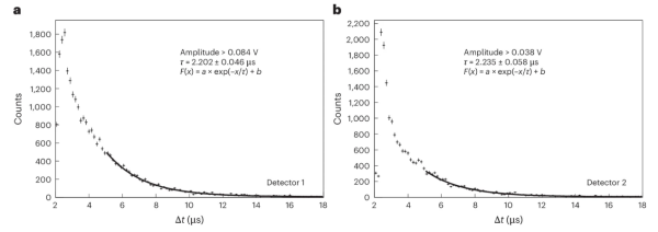 两组探测器的缪子寿命谱测量结果