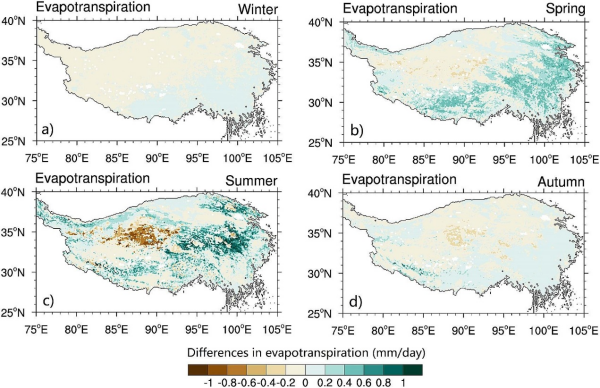 不同冻土渗透性方案对青藏高原蒸散发的模拟差异
