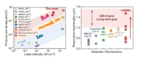 TeNWNs光电流密度和光谱范围