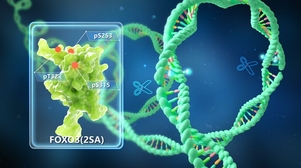 2011年,研究团队在人类多能干细胞中首次实现早衰致病基因的精准靶向矫正,证明了基因线路遗传改造可逆转人类细胞衰老时钟,为工程化长寿细胞的产生奠定理论基础。历经十余年探索,团队通过合成生物学重编程,构建了抗衰型人间充质祖细胞(SRC)技术体系——SRC 1.0和SRC 2.0。SRC 1.0(2017)对氧化枢纽基因NRF2实施精准编辑,强化细胞内源性抗氧化防御网络,建立具备代谢高活力与基因组高稳态的增强型细胞。SRC 2.0(2019)对长寿节点基因FOXO3进行双位点工程化改造,重构磷酸化信号时空调控网络,赋予工程化祖细胞可移植的增强型功能特性。
