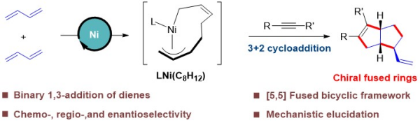 相关研究成果以Stereoselective 1,3-Cyclotelomerization of Butadiene with Dienophiles under Nickel Catalysis为题,发表在《美国化学会志》(JACS)上。研究工作得到国家自然科学基金等的支持。