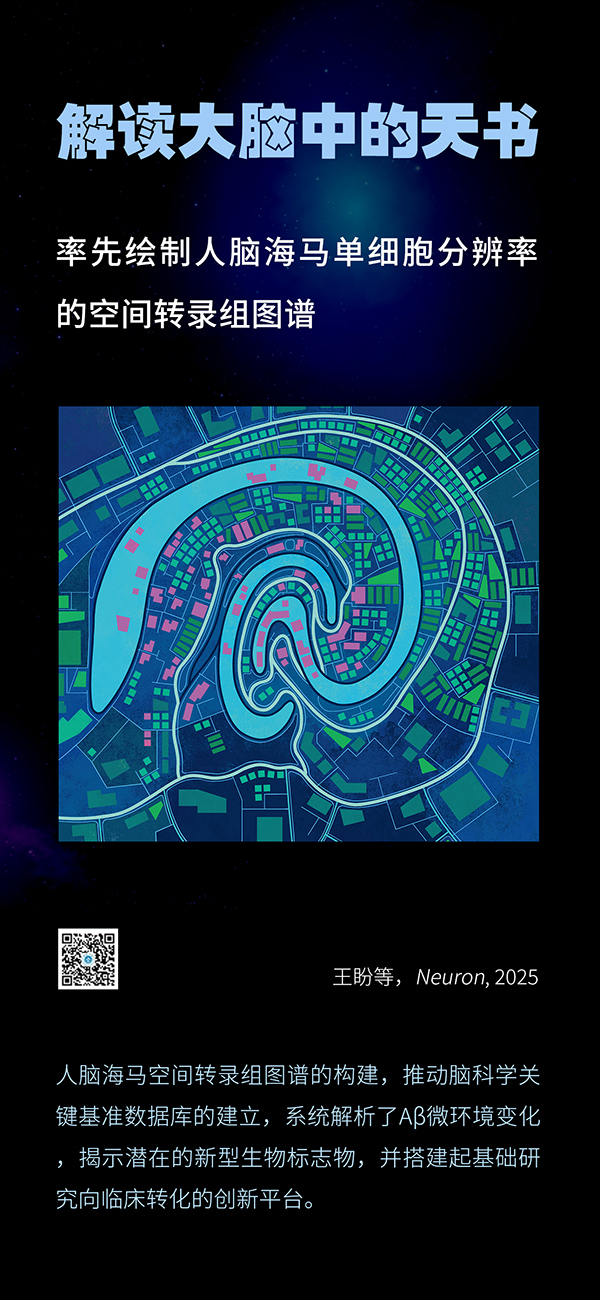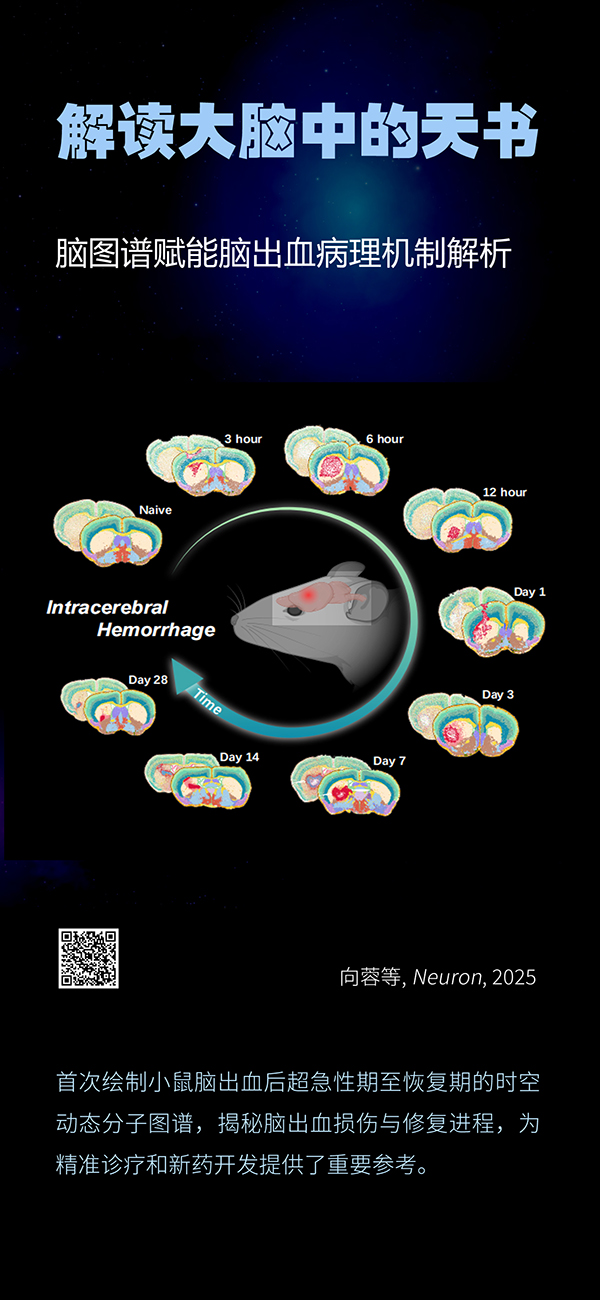三是脑图谱赋能脑疾病机制解析。研究人员利用Stereo-Seq空间转录组技术,首次绘制正常人及阿尔茨海默病(AD)患者海马的单细胞分辨率空间转录图谱,发现了病理性小型胶质细胞和星形胶质细胞在海马伞区域的高度富集及细胞通讯增强,解析了Aβ微环境分子变化,为AD病理研究提供了更精细、系统的分子机制解析,并为AD的早期诊断提供了新的可能性;首次绘制小鼠脑出血后超急性期至恢复期的时空动态分子图谱,揭秘脑出血损伤与修复进程,阐明了以胶质细胞为代表的多种细胞类型在组织损伤与修复过程中的关键作用,为新药开发和精准治疗提供了重要参考。