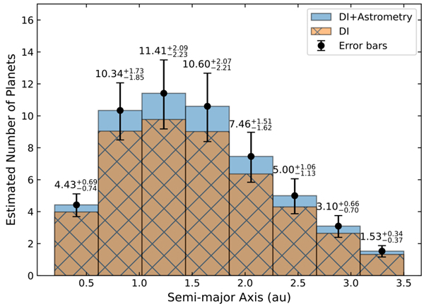 通过模拟行星轨道演化及相位状态对亮度与视位置的影响,研究团队发现,CHES提供的先验轨道信息可显著优化HWO的观测策略。通过引入CHES轨道参数,HWO可大幅减少观测次数与曝光时间,还能有效提升观测信噪比。研究团队通过注入模拟行星样本,评估两种模式下的探测完备度、观测效率与预期产出,结果显示差异显著。数值结果表明,相较无先验数据情形,CHES的先验数据可使HWO的观测完备度平均提升约10%,探测效率(单位时间内的信号获取能力)提升幅度达2~30倍,具体取决于目标恒星与行星参数。此外,基于Kepler数据推导的类地行星生成率,研究团队估算了在不同生成率与宜居带模型下的总探测产出。CHES提供的先验数据可将HWO预期发现的系外宜居行星数量从约37颗提升至约54颗,显著增强其科学产出能力。