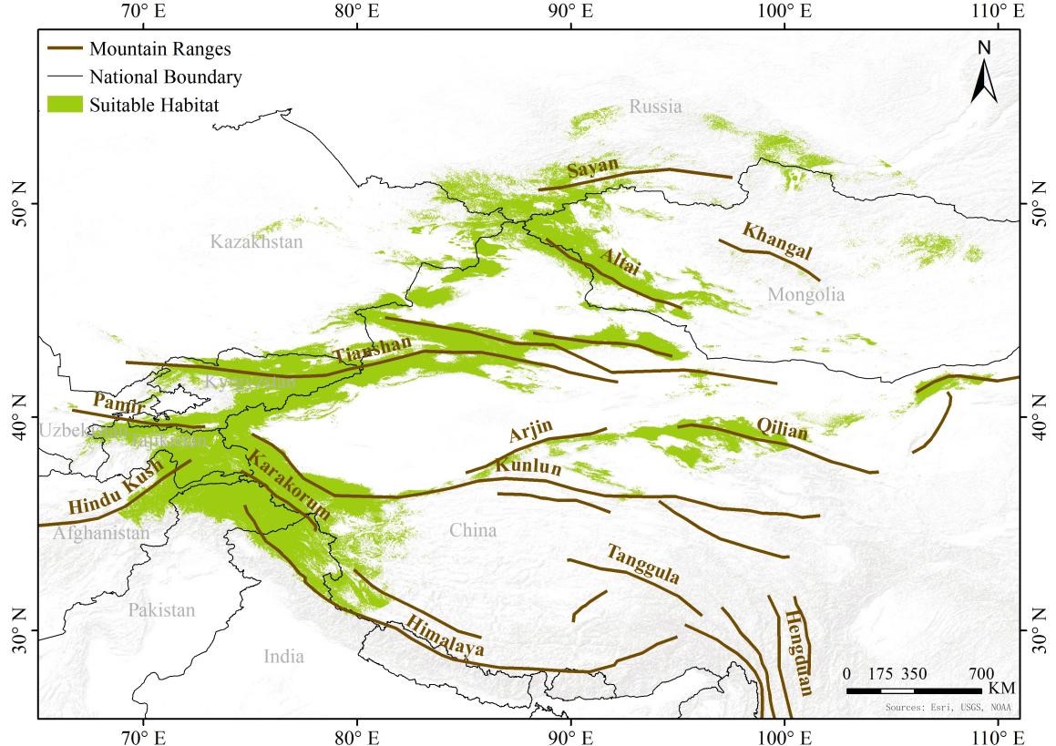 跨境物种保护是全球生物多样性保护面临的核心挑战,其难点在于如何量化各国在跨境物种保护中的责任。北山羊是中亚高山生态系统的关键物种,分布区域跨越11个国家。目前,该物种面临气候变化、生境破碎化及跨境基础设施建设等多重生存挑战。同时,北山羊作为雪豹等濒危食肉动物的主要猎物和高山生态系统功能完整性的重要指示物种,具有显著的伞护种效应。因此,为有效保护北山羊,科学合理的跨国保护责任分配机制亟需建立。