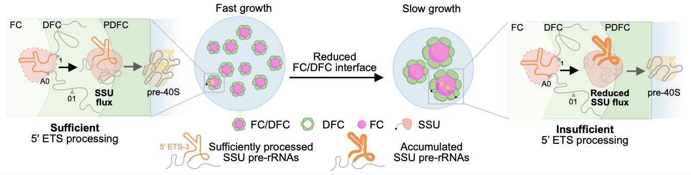pre-rRNA加工与核仁高级结构协同调控以响应不同细胞状态需求