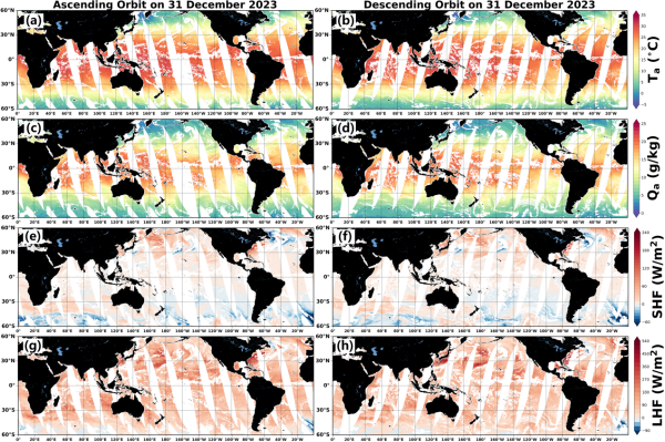 同时,研究团队基于MPFNet模型生成了覆盖11.5年(2012年7月至2023年12月)分辨率为0.25°的全球逐日Ta、Qa、SHF和LHF产品,为精细化海气通量估算、气候变化监测和极端天气预测提供了数据支撑。