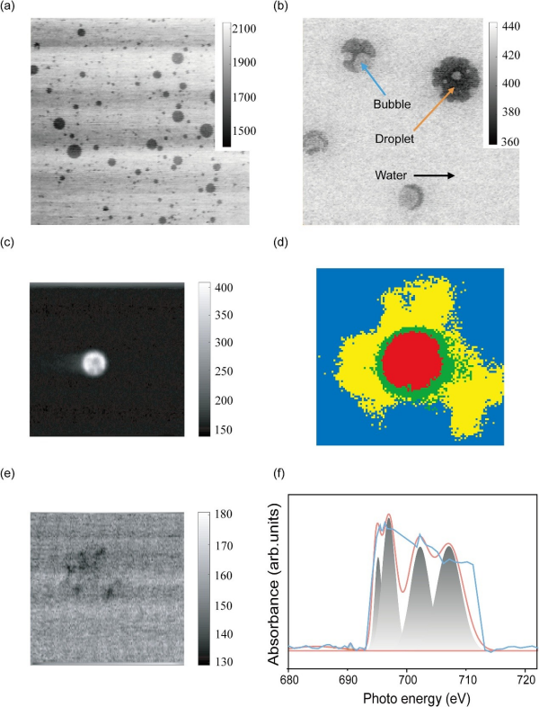 近日,无码影片 上海高等研究院与上海应用物理研究所合作,创新性利用同步辐射软X射线谱学显微技术,成功诱导单个亚微米级全氟己烷(PFH)液滴发生内部相变,并实现相变后纳米气泡生长演化的高分辨率原位观测。