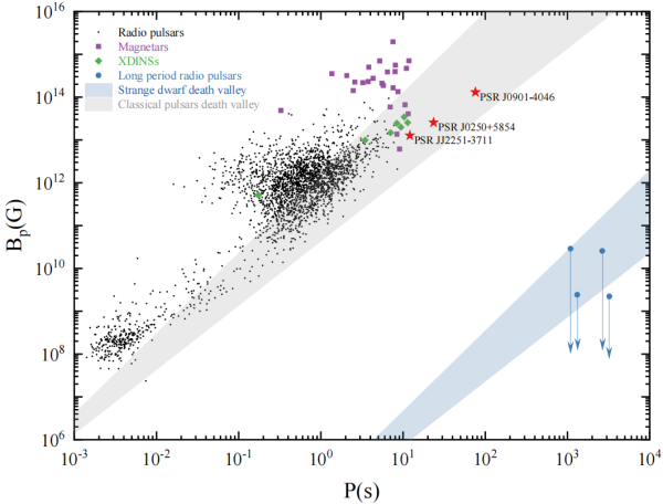 超长周期射电暂现源自转周期高达数千秒,远超传统射电脉冲星的毫秒至数十秒的范围。根据传统脉冲星理论,这些自转极度缓慢的天体应位于射电辐射“死亡线”之下,其自转能不足以产生射电辐射。然而,近年来陆续发现的GLEAM-X J1627-52、GPM J1839-10等天体却展现出周期性的射电活动,这对现有理论形成严峻挑战。