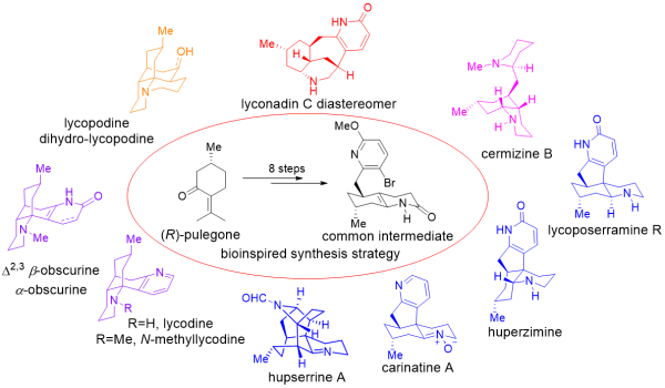 石松生物碱是存在于石松科植物中的特征性成分,结构多样且复杂。这类生物碱是药物发现的重要资源。其中,石杉碱甲作为石松生物碱的典型代表分子,具有选择性乙酰胆碱酯酶抑制活性,在临床上用于治疗中轻度阿尔茨海默病。石松生物碱在植物资源中含量极低,限制了石松生物碱活性研究和进一步药物发现,如何通过化学全合成方法打破石松生物碱资源匮乏困境,成为亟待解决的科学问题。